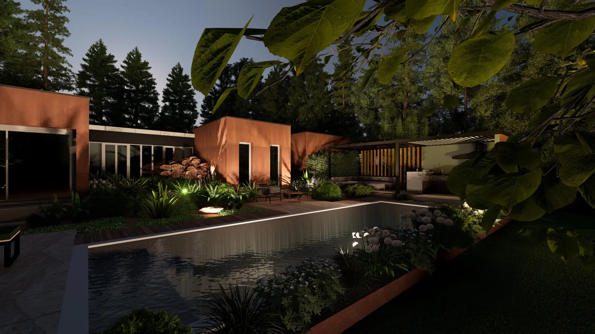 Cet espace se vit autant qu’il se contemple depuis l’intérieur, créant une continuité harmonieuse entre dedans et dehors, agréable en toute saison.