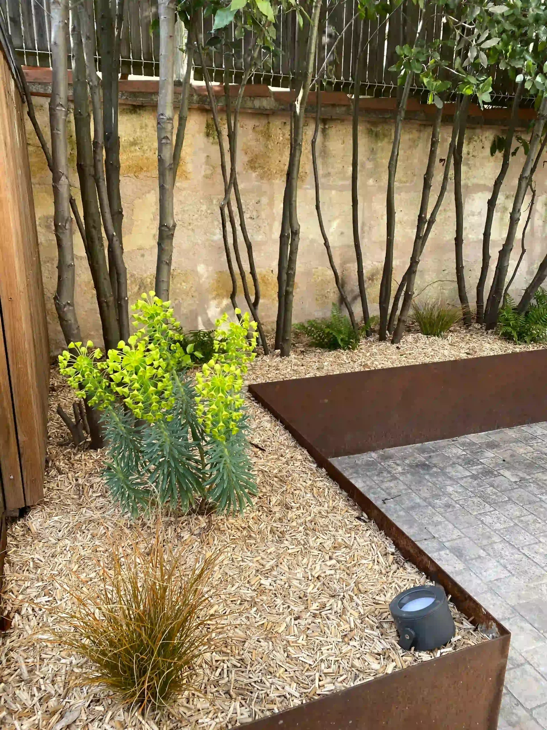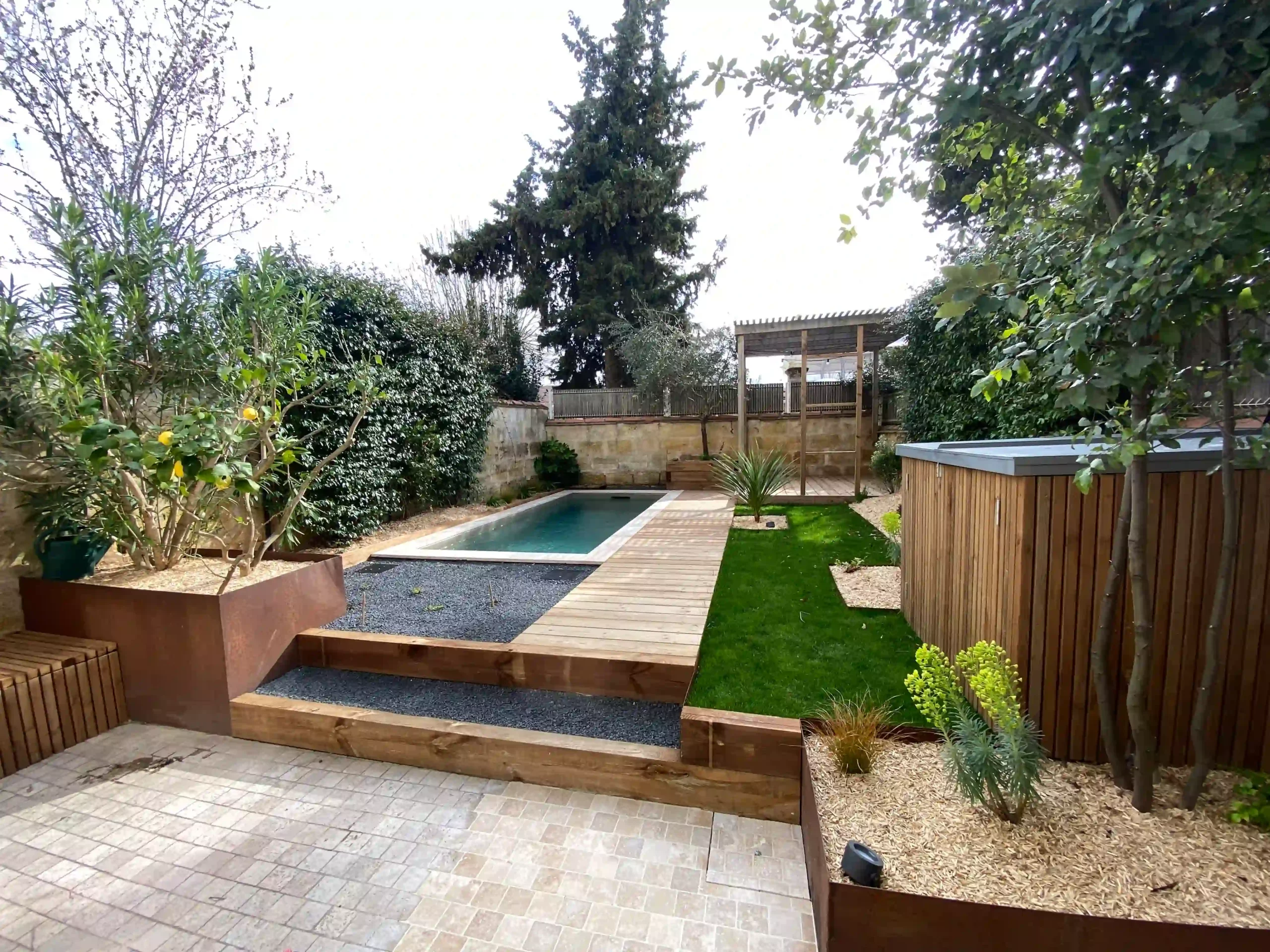 Pour ce jardin de ville, l’objectif était d’intégrer une piscine tout en structurant l’espace pour en faire un lieu de vie fluide, fonctionnel et esthétique.