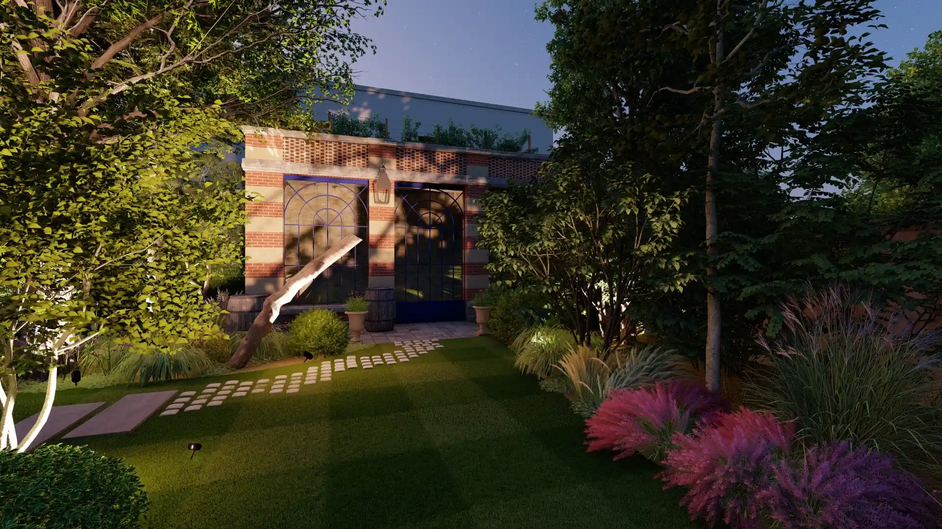 Le boulodrome s’intègre discrètement grâce à un traitement végétal soigné, tandis que le réemploi des pavés existants valorise la mémoire du lieu. Enfin, une mise en lumière subtile vient souligner l’orangerie, ajoutant une dimension chaleureuse et conviviale à l’ensemble.
