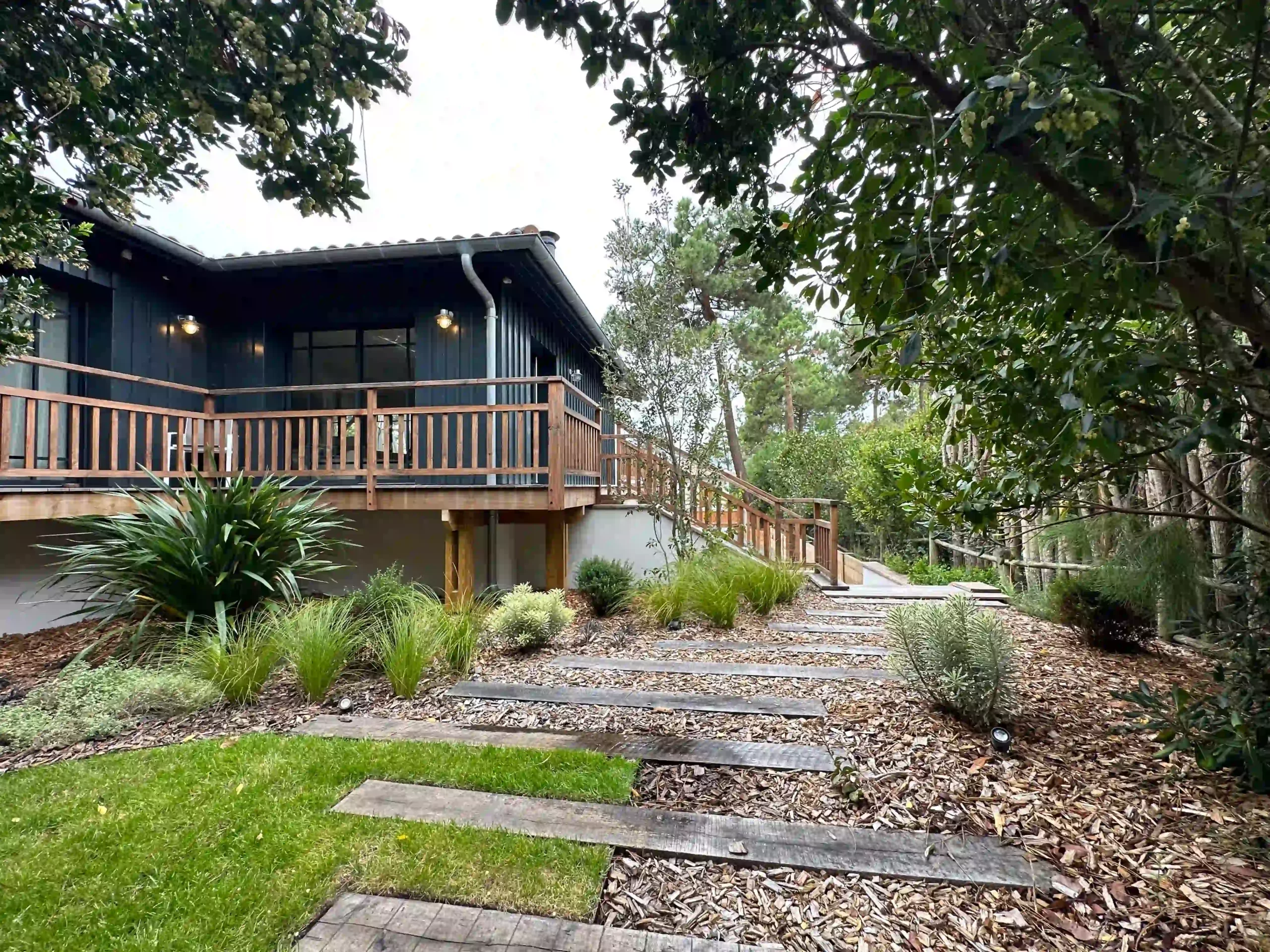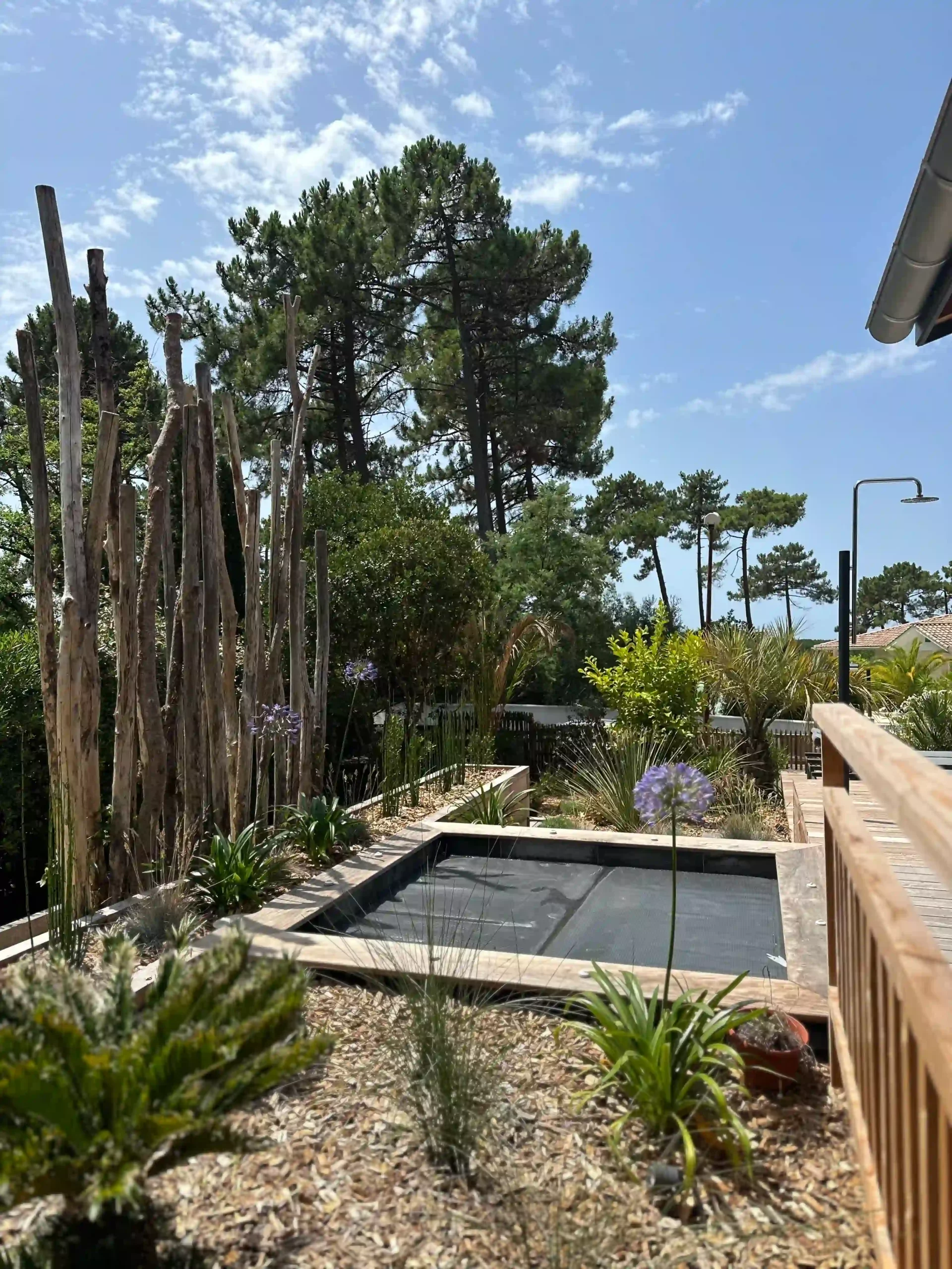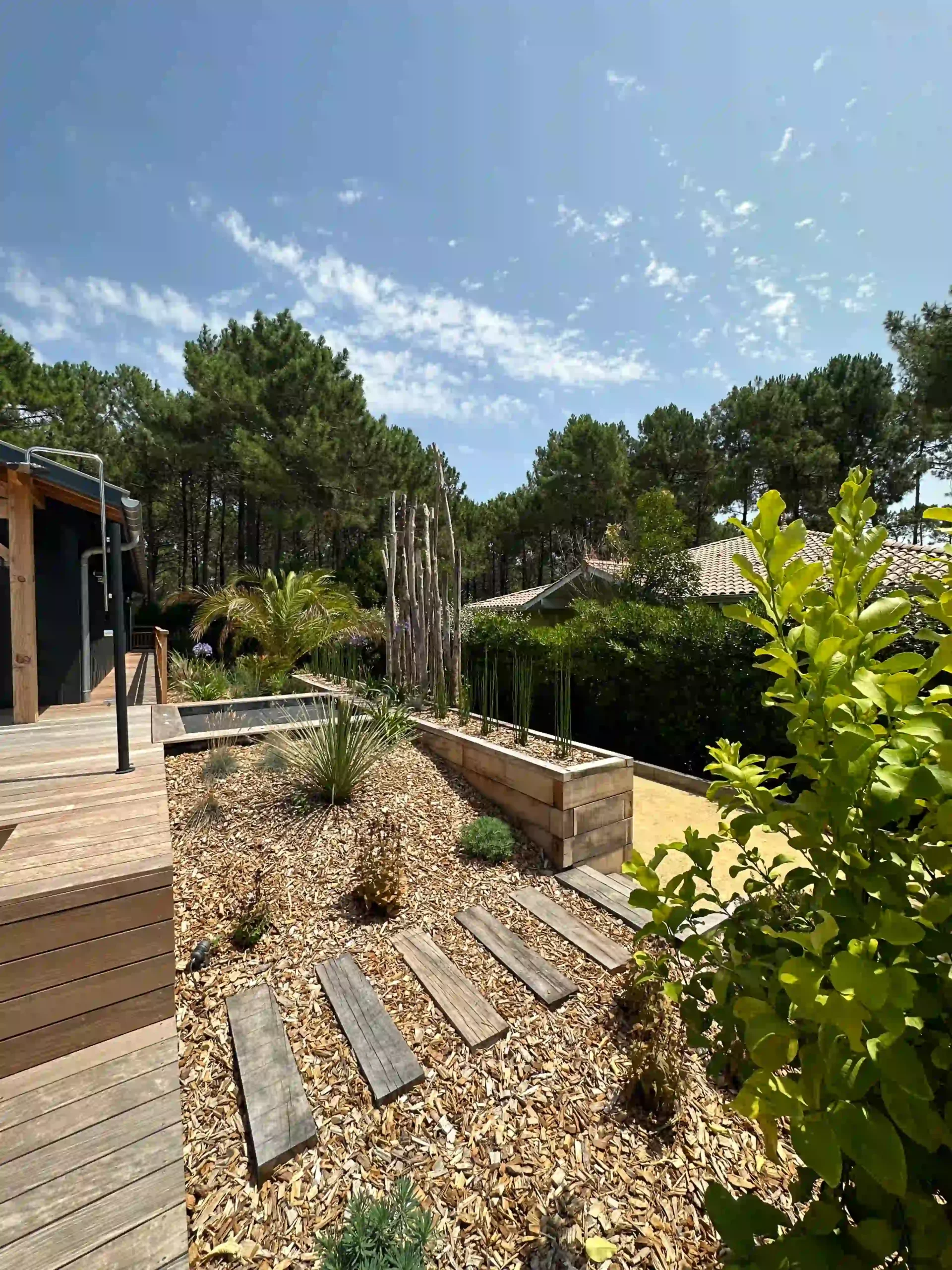 Jardin | Cap Ferret | Intimité | Nature | Vis-à-vis | Jardin intime | Paysage boisé | Sérénité | Piscine | Terrasses | Cheminements | Harmonie | Confort